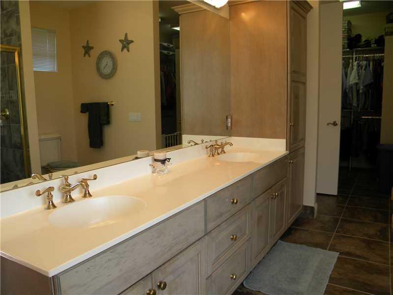 Magnificant 5/4.5 hm features 1/1 guest house w/covered walkway to main house.High ceilings,recessed lighting,crown moulding & knock down.Tile floors, shutters, high-tech sec system.Cen vac. One 4ton & two 2ton a/c units.Loads of storage. Split br plan.La rge Master Suite w/sitting area,shower,spa tub,custom dbl closet w/ built-ins.Kitchen has wood cabinets/granite counters.LR has white coral rock fireplace.Amazing pool area w/jacuzzi, covered patio and cabana bath & brick pavers. Quiet cul de sac.