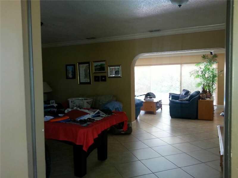 This property has been renovated with many upgrades, bright & spacious with hurricane shutters, tile, etc. Large living area. big family room for your daily comfort. Covered terrace faces an spectacular Tropical patio with ponds, large pool surrounded b y a fascinating landscaped area with a great variety of Tropical plants and trees. a real "10" All as is.
