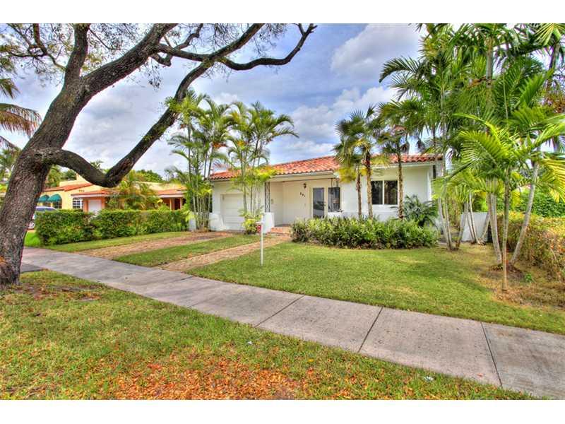 Charm galore on one of George Merrick's most quiet, beautiful, tree-lined streets in the North Gables. One of the very few 3/2 homes under $500k in Coral Gables; with an updated wood and granite kitchen, and recent baths no less! Architecturally significa nt ceilings, wood floors, built-out closets, and a sweet front porch will make this a wonderful home for some lucky buyer!