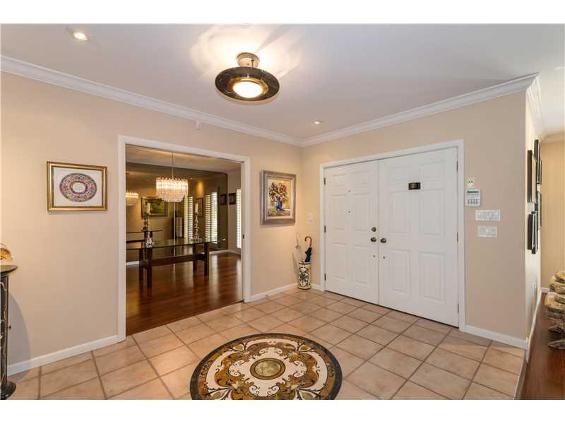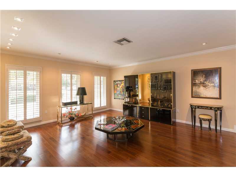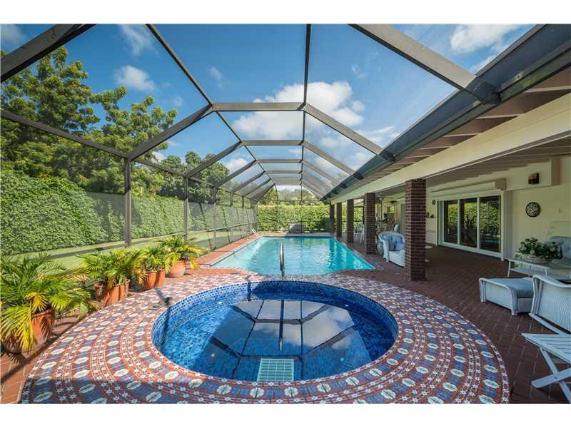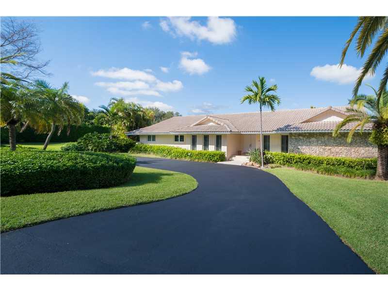 Beautiful & updated executive home in prestigious Pine Bay walled community with Gables security patrol. Open & airy. Elegant and gracious. Formal living and Dining Rooms with hardwood floors. New impact windows & doors. Fabulous family room with fireplac e & wet bar. Gourmet cook's kitchen. Cozy master suite. Gorgeous onyx guest baths. Spacious roofed/tiled patio with domed pool/spa. Large corner builder's acre with room for North/South tennis court. Truly Special!