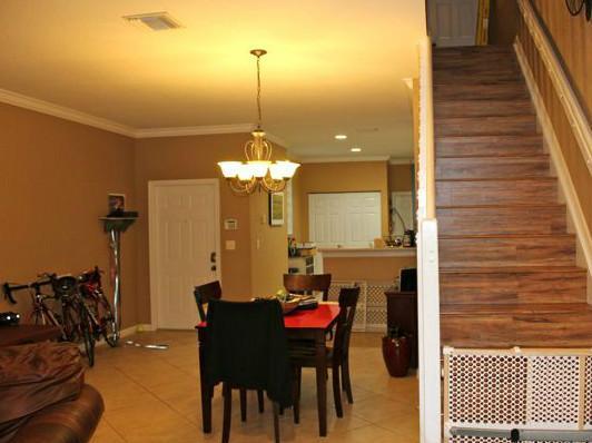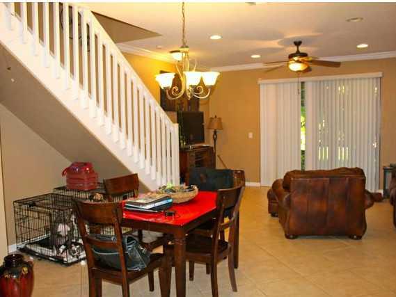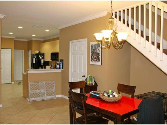 Very private waterfront 3 Bedrooms 2.5 Baths townhome in the gated section of Courtyard at the Grove. Covered & screened patio, and no neighbors behind. Guest parking and passive park right across the street. Diagonal ceramic tile flooring in the living a reas, Laminate -wood looking- floors in second floor hallways, bedrooms and stairway. Eat-in kitchen with 42" cabinets and newer appliances. Brand new washer & dryer inside the townhome (under A/C not in the garage). Crown Molding / Accordion Shutters.