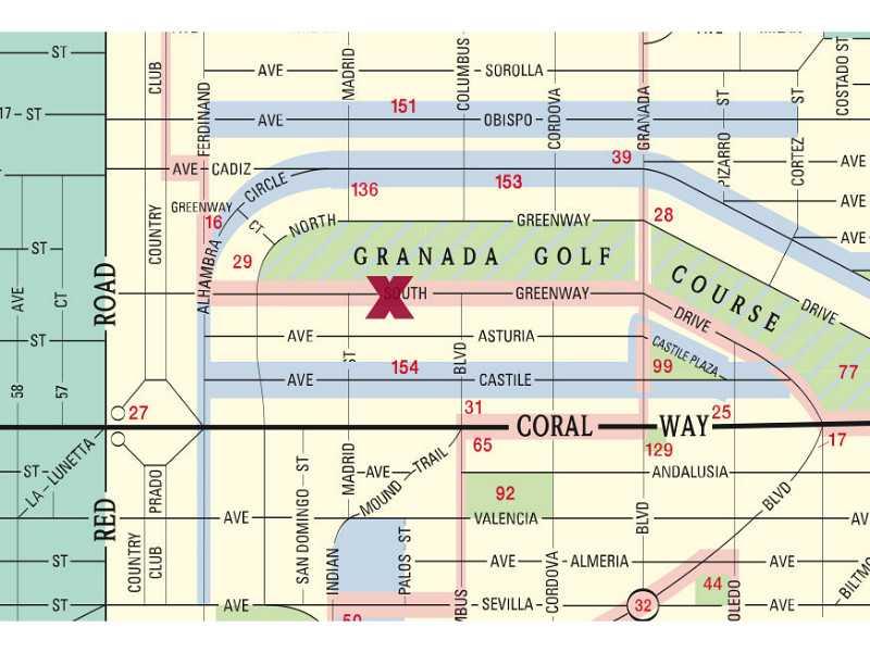 Your opportunity to own a charming old Spanish hacienda facing the 6th fairway of the Granada Golf Course. Short sale with bank cooperating. Foyer entry off circular drive. Formal LR, DR. Office with arched windows has great views of golf course. Lovely k it. with lots of storage next to gar. Two bedrooms with Jack & Jill bath. Small guest bdrm/bath near pool. Huge cathedral ceiling Family Room has sliding doors that open to the pool and spacious patio. Master suite upstairs. Firm price.