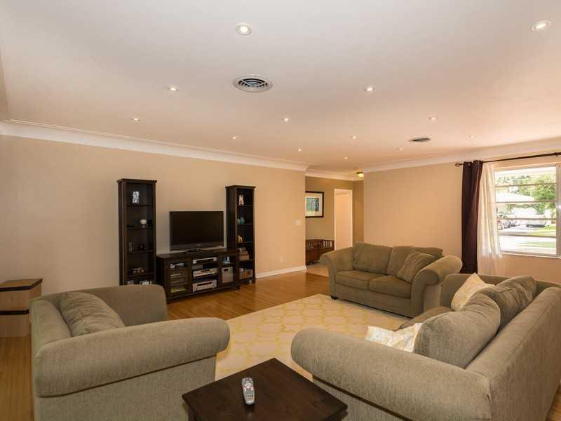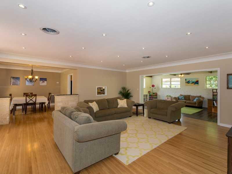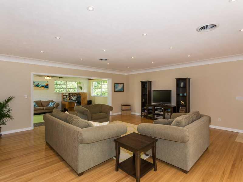 Mid-Century meets cottage-chic best describes this spacious residence with 2,413 sf on a 10,500 sf lot. You will be dazzled by the vast open spaces, the beautiful blonde oak floors & the original ceiling moldings. The family room features rustic wood beam s, white brick & cottage-style paneling. The bedroom wing consists of 3 spacious bedrooms w/ ample closets & 2 baths (includes the master en-suite). Formal dining room, kitchen w/ breakfast area, indoor laundry & 2-car garage complete this home.