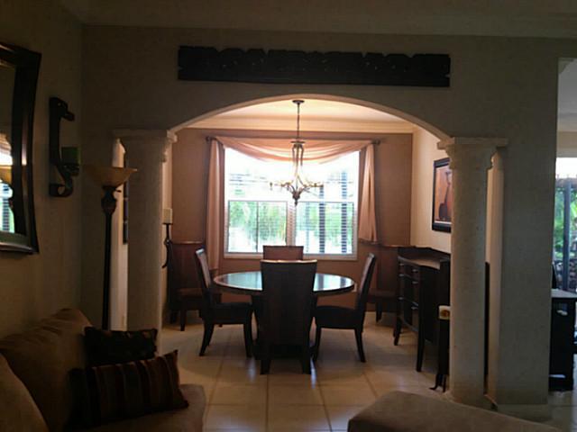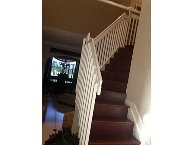 Spectacular West Miramar Waterfront Townhouse 3 bdrm / 2.5 bath plus Office/Den and 2 car garage. High Ceilings and open floor plan. Corner Gated Lot, with extra large driveway and large lake view. One of the largest lake view lots in this townhouse. Beau tiful large tile on first floor and wood laminate on stairs and second floor. Crown Moldings throughout the entire house. Washer/Dryer upstairs for easy laundry access. Family room is wired for home Theater / surround-sound. Hurricane Shutters included.