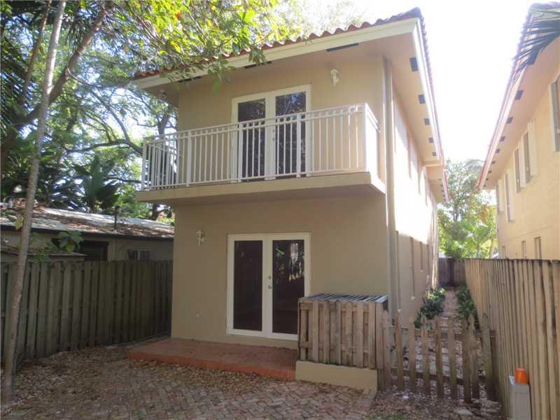 HOT PROPERTY! Desirable Virginia Street townhome/condo in Coconut Grove. Lovely lot with shady oak trees, electric gate, brick driveway and a pleasant wood deck. Extra storage, too. Marble floors inside, nice wood kitchen cabinets, granite counters, and a nice floor plan. Bonus- nice wall unit is included. Master & front bedroom have balconies for a pleasant view. Large closets, nice finish details, and a very nice neighborhood to boot. We think this will go quickly, so please do not delay visiting!