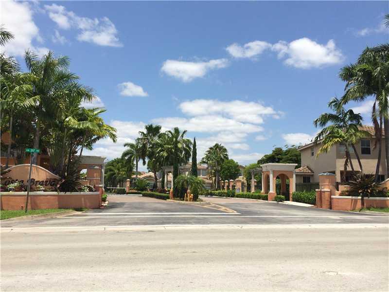 Beautiful totally upgraded 4/2 & 1/2 Townhouse in the heart of Doral. Renovated kitchen w/ SS appliances & granite cashmere white stone counter, upgraded bathroom's ,Brand new A/C, Brand new W&D. Screened patio w/ brick stone, garage converted into an off ice w/ storage, Perfect home to raise a family located in a cul-de-sac, Great neighbors. Corner lot. Gated & quiet community. Centrally located within walking distance to great schols, less than a mile to FL Turnpike, shops and malls. **BETTER THAN NEW**.