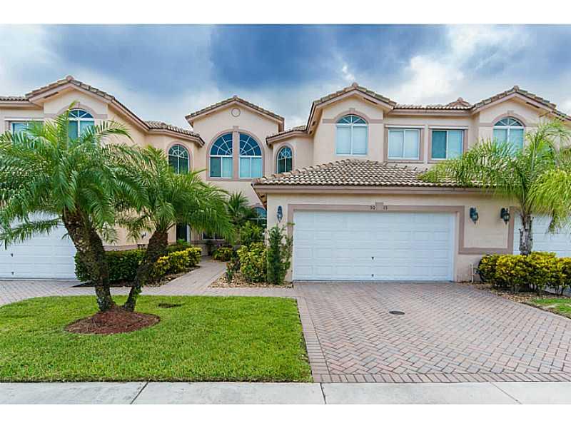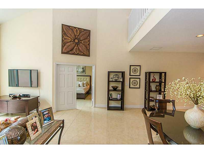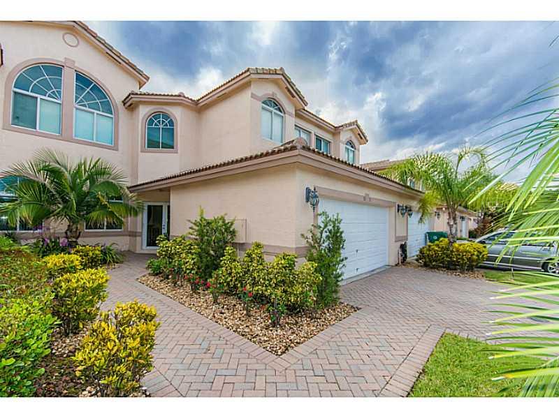 Oversized 3/3.5 townhouse w/2 Car Garage with a large loft(optional 4th bedroom) plus an office. Features include soaring ceilings, first floor master suite w/huge walk-in closet, a second floor master bedroom suite w/ walk-in closet. Porcelain tile & Per go floors throughout. Upgraded eat-in-kitchen w/granite countertops & SS appliances. New AC unit, Custom Draperies, Hurricane Impact Windows & shutters for Sliding Doors. Great location, easy access to major hwys, located Cooper City A+ school district!
