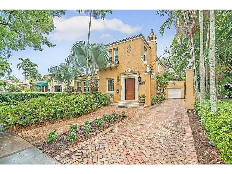 Miami News' Ideal Model Home of the 1920's: Old Spanish painstakingly updated to preserve historic details while offering modern comfort & luxury. Two story 3/3 (master suite up & 2 beds down) w/ original wood burning fireplace & original pecky cypress ce ilings in living + dining rooms. Kitchen incl SS appliances & white Corian counters. Large master suite w/ walk-in closet & en-suite bathroom w/ whirlpool tub & sep shower. Wood floors, a generator & more. SQFT ADJ - tax / TA - appraiser