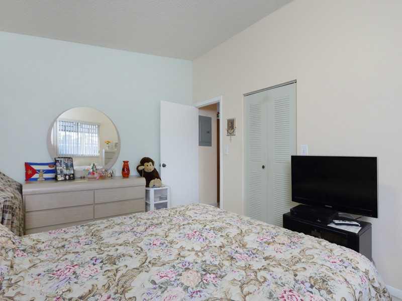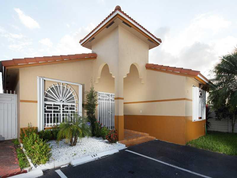 Beautiful one story townhouse, corner unit on dead end street with fenced back yard, covered screen patio, all tile, 3 parking spaces and accordion shutters on all windows. Located in west Hialeah.