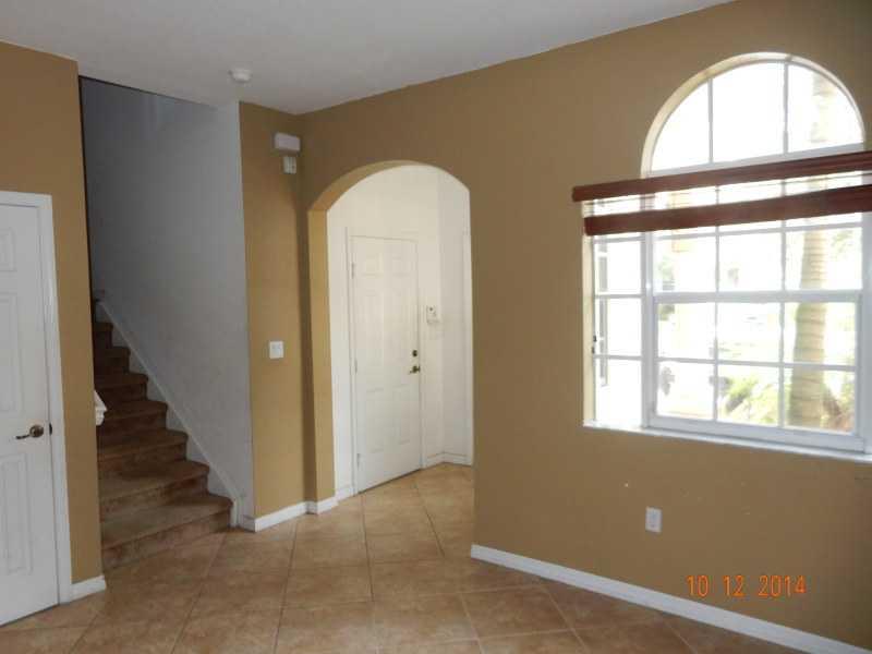 Bank Owned,3/2.5 simple fee townhouse with 1 car garage located in an all age, guard gated community. Home has taller than average ceilings, knock down finished walls w/tile flooring on first floor.