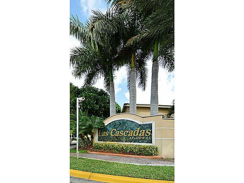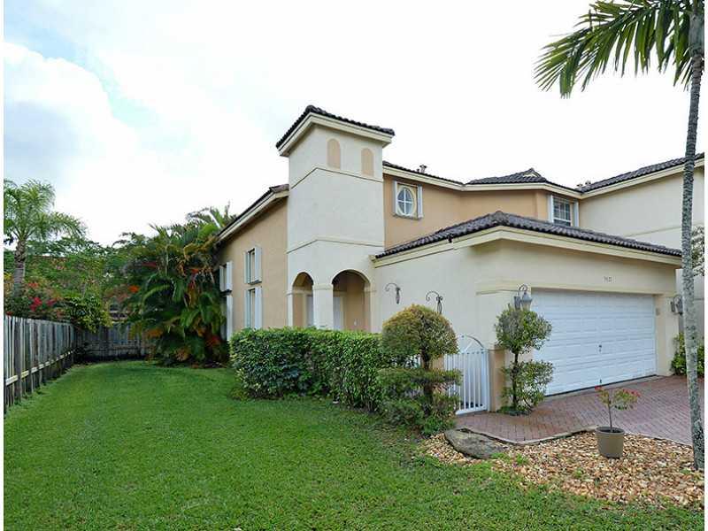Beautiful 3 bed/ 3 bath corner townhome in a premier Doral Gated Community. This 2-story home has an great kitchen with stainless steel appliances, wood cabinets and center island. All ceramic tiles downstairs and laminate wood floors upstairs. This home features an open environment, with high ceilings and 2 car garage. The community is close to major highways, great schools, 24 hr security, club house and pool. Move in ready!