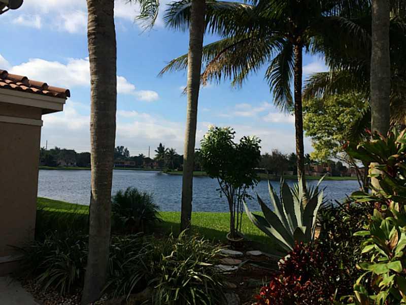 WATER, WATER EVERYWHERE! This beautiful, well maintained lakefront corner town home is nestled in an ideal cul-de-sac location. This home boasts gorgeous views of the lake, on two sides! Screened in patio and hot tub are great for entertaining. Accordion storm shutters upstairs. Sought after Davie community has plenty of open space, including community pool, lighted tennis, basketball, racquetball, playground and barbeque pavilion. HOME WARRANTY IS INCLUDED FOR 1st YEAR! A+Schools, Near all expressways!