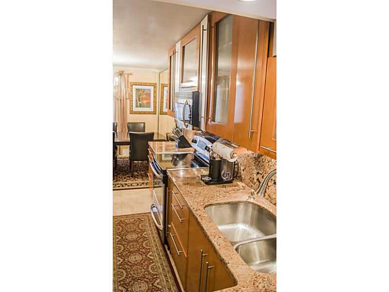 Rarely available, remodeled corner unit in desirable Venetian Park,. Modern main kitchen, exotic Jupporano Bordeaux granite counter top , double SS sinks. Kitchen island w / build-in wheels to expand dining room area,. 60x60 High top Granite Buffet Area. 2nd separate kitchen can be covered into Wet Bar. Italian Marble floors, build-in shoe closet, tiled front & back yard. Community features heated pool, clubhouse, tennis courts. Walking distance to the beach, close to shops, restaurants, airport.