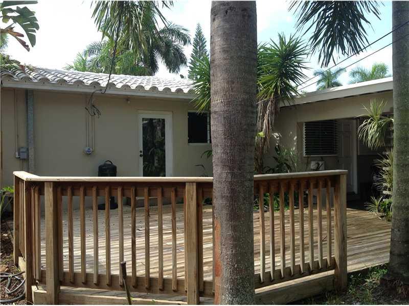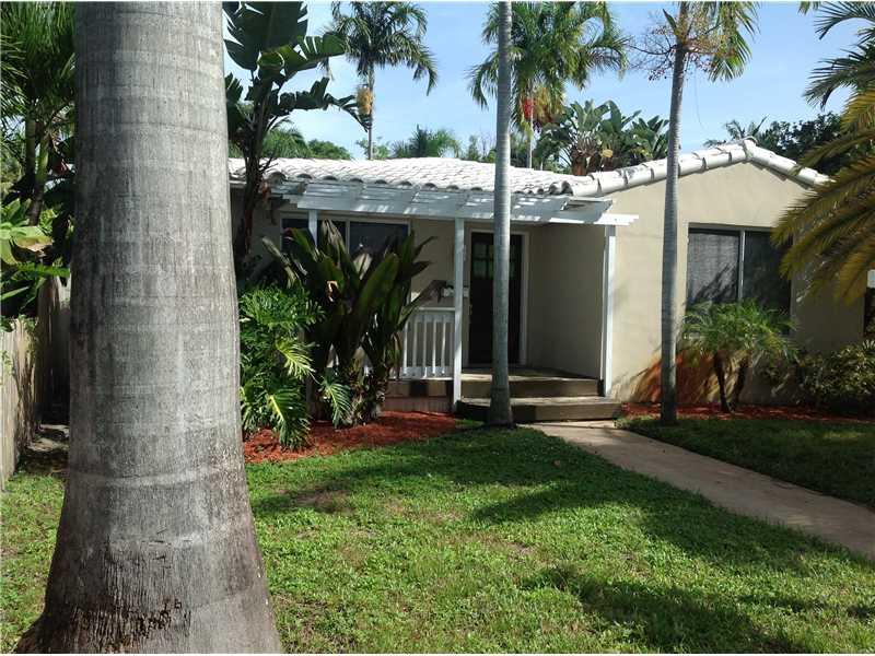 Adorable 2 bed/1 bath home w/covered carport. Large open living room with lots of windows. Formal dining room w/french doors. Kitchen w/ pantry & breakfast bar opens to dining room. Good sized bedrooms. Front porch. Spacious fenced backyard w/wood deck & room for a pool. Terazzo floors throughout. Gas stove & water heater. Laundry room. Driveway in back alley. Located in prestigious Hollywood Lakes area. Walking distance to downtown restaurants and Young Circle. Minutes from the beach.