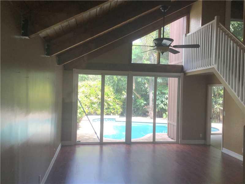 Charming 3/2 den+loft Townhome w/private pool on culdesac in desirable Palm-Aire. Plenty of character. Exposed wood beams, high vaulted ceiling, Granite counters & black kitchen appliances; Pergo & carpet floors, Den/guest bedrms on 1st floor, Master upst rs w/loft & sitting room. Patio wood decking, large yard & lots of foliage w/fruit trees makes it a cozy place to call home. Shed on site w/room for garden. Community dog park. Near Turnpike & I95. Minutes to shopping & dining; 30 mns Ft Laud Airport.