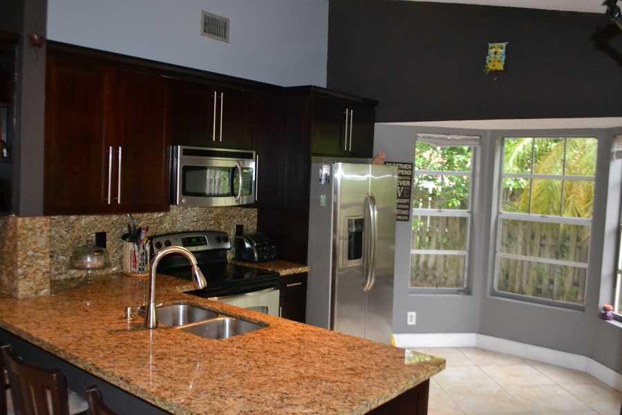 SEEING IS BELIEVING! WARM AND COZY HOME IN SOUGHT AFTER WESTON. ENJOY EATING IN THE EAT IN KITCHEN WITH BAY WINDOWS THAT LOOK ONTO THE LOVELY PATIO GORGEOUS KITCHEN HAS BEEN REMODELED WITH CHERRY WOOD CABINETS, STAINLES STEEL APPLIANCES AND GRANITE COUNTE RS THAT GIVE YOU ADDITIONAL PLACE TO SIT. SPECTACULAR MASTER BATHROOM HAS BEEN REMODELED ALSO WITH DUAL SHOWER HEADS. TOP OF THE LINE LAMINATE WOOD FLOORING IN BEDROOMS AND TILE IN THE LIVING AREA AND KITCHEN.GREAT COMMUNITY.
