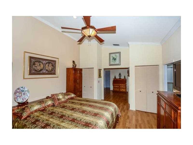 Truly unique 3/2 (2beds + den) one story home, no neighbors behind & park setting in front, remodeled & updated eat-in kitchen w/lots of cabinets, stainless steel appl & tumbled stone, spacious great room, wood flooring everywhere, crown molding & more! R oof 2011, A/C 2012, large patio (40x12) for relaxing or entertaining. Maintenance includes front lawn care. Set in cozy gated enclave w/community pool, steps to Town Center.