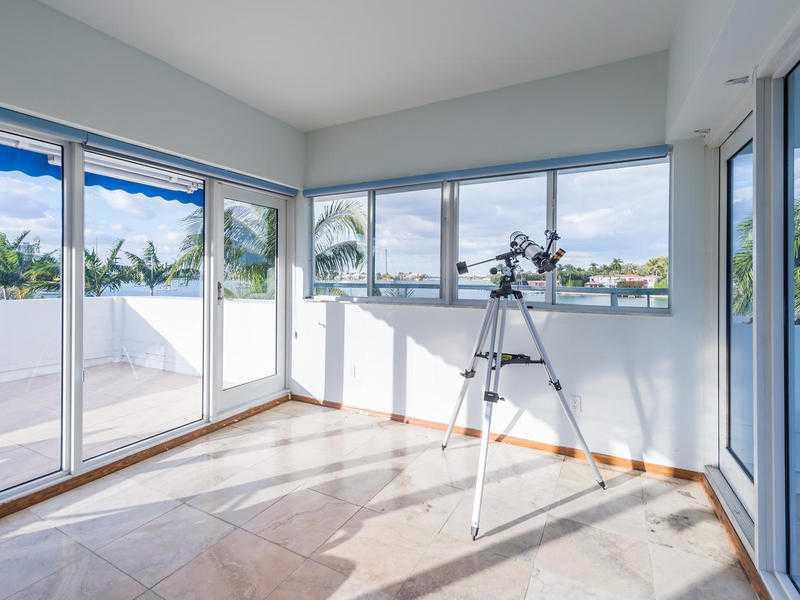 BACK ON THE MARKET!! An ideal price for a prime location on Palm island this enchanting property is one of a kind, completely renovated in 2014, roof top terrace with BAY views from every room. 36"x24" CARIBBEAN BLUE marble &wood floors throughout. State of the art Kitchen w/ granite countertops, an outdoor pergola from Luxapatio, hurricane impact windows, sound system, steam shower room, swimming pool, jacuzzi, and new Boat deck & seawall with 50Linear Ft of water frontage. Breathtaking views!
