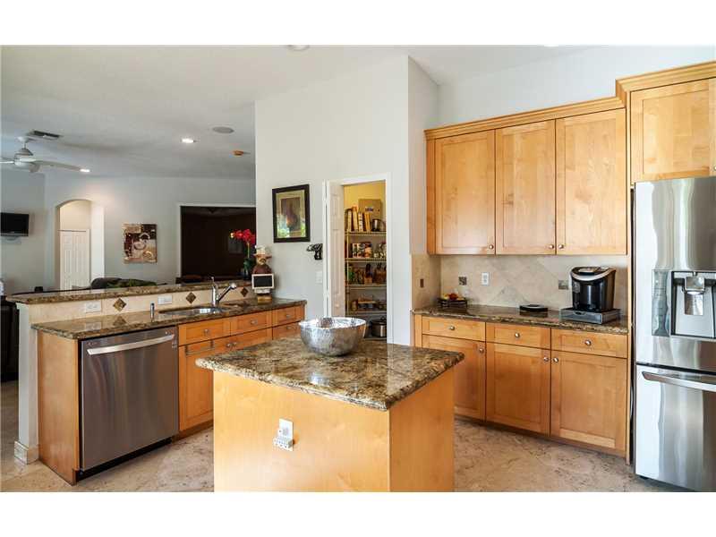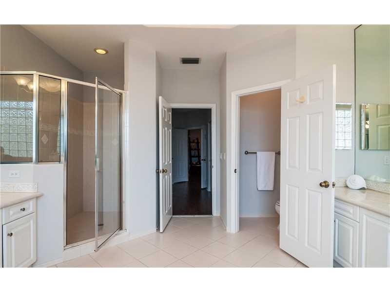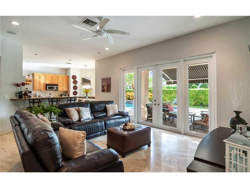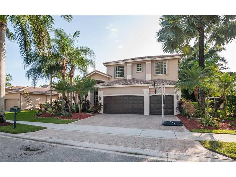 Prestigious Weston Hills gated golf course community! 4 bedrooms plus a Den on first level w/ 4 baths. Kitchen with maple cabinets, granite, & stainless appliances. French Doors to paver patio with fountain and Pool, beach entry in fenced private yard wit h surround sound, Platinum Mosquito protection & full marble cabana bath. Wood floors in all bedrooms, tray ceilings, Loft, balcony off masterbed, plantation shutters, closet organizers, Roman Tub, Accordions, 3 car garage with rubber floors, 2 New A/C's