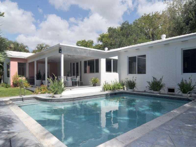 The French Village Area! Desirable South Gables 4 bedroom 3 bath split bedroom residence situated on a quiet tree lined street. Tastefully updated kitchen and baths. Displays hardwood floors, vaulted ceilings, French doors and impact windows. Crown moldin g. Walk-in closets. Double sinks in master bath. Covered front & back porches. Family room overlooks tropically landscaped private pool area. Perfect for entertaining and living the South Florida lifestyle. One car garage. Alarm. Great location.