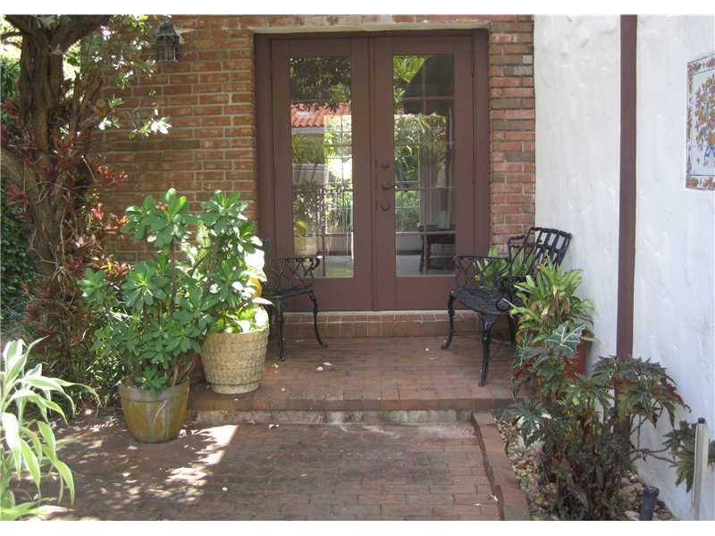 Charming 2-story townhome in the historic 1920's French Normandy Village off LeJeune Road five blocks north of Bird Road. This unit along with 4 others were constructed in 1989. Walled and gated with Chicago brick patio on three sides. Impact windows but mostly original condition. Foyer entry with half bath, soaring ceiling and fireplace in LR. DR has French doors to garden. Kitchen with adjacent laundry rm and pantry has pass through to Family rm. Upstairs, 3 bdrms + 2 baths plus lounge area for TV/den.