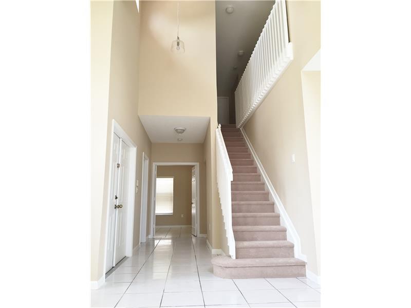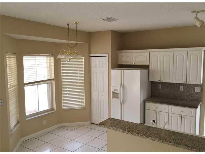SPACIOUS 4 bedrooms 3 full baths, 1 bedroom and 1 full bath downstairs. Renovated kitchen with granite counter tops, large living and dinning room areas, roman tub and shower in Master bath, separated laundry room, accordion hurricane shutters and screen ed patio, low maintenance yard, association takes care of the front and side yards. Buyer can build a fence for privacy. Gated community with 24 hours security