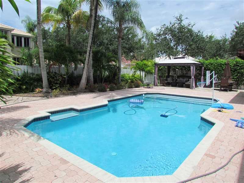 Spacious 2 story 5BR 3B home with pool on cul de sac. Well maintained with custom touches. Upgraded kitchen with wood cabinets, SS appliances and granite countertops. Wood floors in bedrooms and built out closets. Landscaped property with fenced backyard. Covered seating area with awning and a separate gazebo. Additional Features: Pool fence, Alarm, Child locks installed, accordion hurricane shutters, impact french door, insulated garage doors. Centrally located in Weston, Florida. A rated Schools.