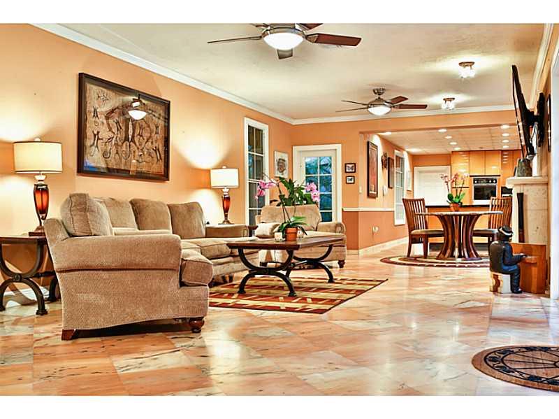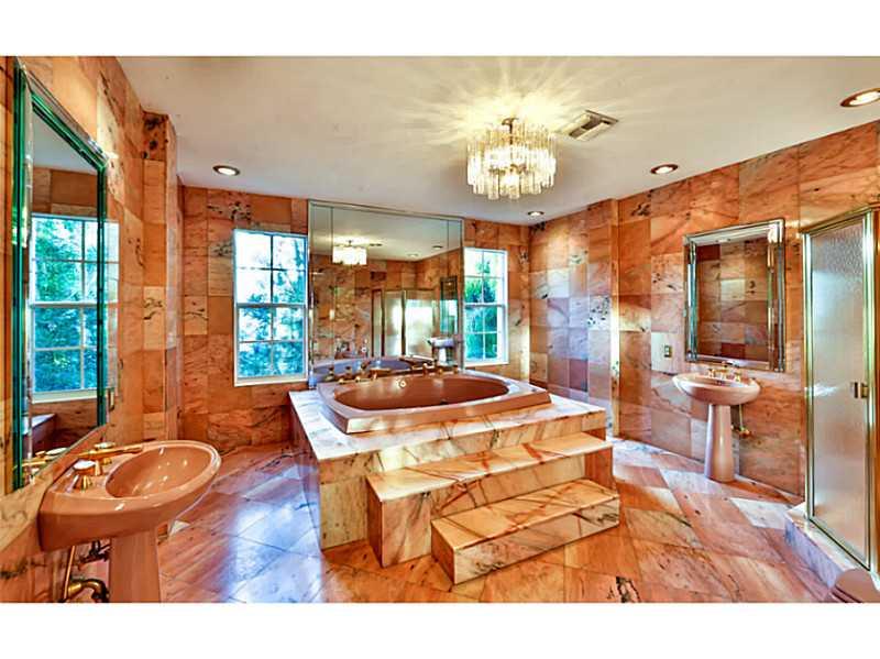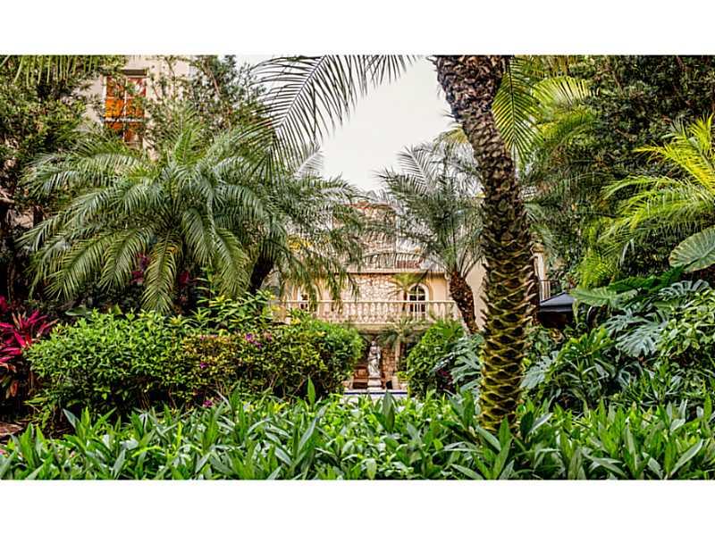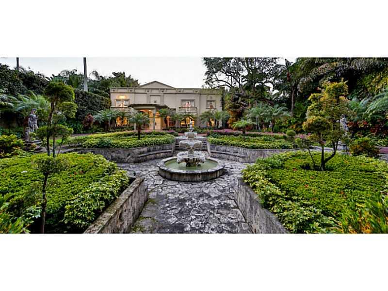 This exceptional one of a kind estate resides in one of the Grove's finest locations. Surrounded by lush mature gardens that sprawl well over an acre, the opulent home boasts grand interiors with marble floors, formal living with impressive volume ceiling s and fireplace, formal dining w/arched windows & a sun drenched FL Rm leading to a lavish keystone pool loggia and secret gardens. The private walled-in compound together with its aviaries, Koi ponds and waterfalls have incredible entertaining potential.