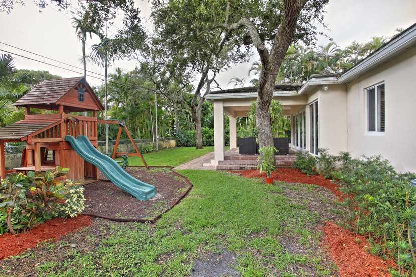 Large single family home located within minutes to the University of Miami. Quiet, family friendly street, large over sized lot. Impact windows and one car garage. Home features hardwood flooring and tiled throughout, plantation shutters, bright family r oom lined with French doors, updated gourmet kitchen with stainless steel applainces, granite, & custom cabinets. Bedrooms have large closets with built-in shelving. Backyard features a brick paved patio and lush landscaping.