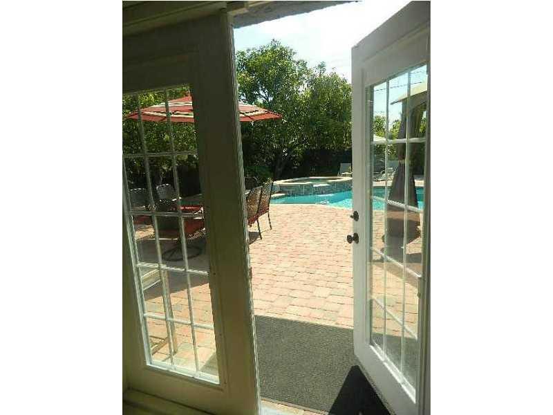 Private 3/2 hideaway: Split bedroom plan with travertine tile and wood floors throughout. Updated kitchen; stainless steel appliances, modern cabinets, granite counter tops and a small movable kitchen island. French doors lead to the custom paved patio th at cradles the waterfall spa which spills onto the designer heated pool with remote control. Lush palm trees, privacy fence, outdoor shower, sandy beach, concrete shed and a BBQ area is great for entertaining. This oasis has new doors, barrel tile roof