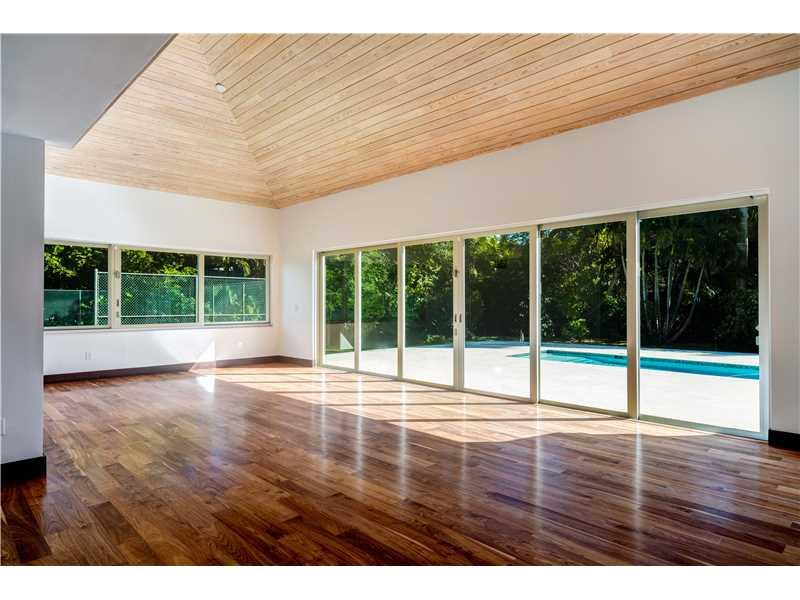 Impeccably restored Modern Miami Estate on 2 rolling Pinecrest acres. Sunny, open floor plan; linear central stair; miles of mahogany & marble; sleek fixtures; fireplace; vaulted ceiling; impact windows/doors. Expansive, glass-walled Great Rm & Dining Rm; spacious Family Rm; gleaming Kitchen w/top-tier appliances; phenomenal Master. Vast Patio & Open Pool. Detached Guest House. Tennis Court. A contemporary canvas awaiting your signature. Includes 1 Buildable Lot w/ separate folio# 20-50-006-0510