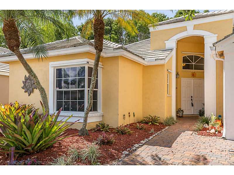 Welcome home to your tropical paradise. This charming home features an open floor plan, vaulted ceilings, a beautiful master suite, updated bathrooms, ceramic floors in main living, bamboo flooring in bedrooms, stainless steel appliances, bay windows and French doors leading you to a backyard oasis. Nestled in sought after community of Bermuda Springs, known for its magnificently maintained community pool and parks and located within a short walking distance to A rated schools and houses of worship.