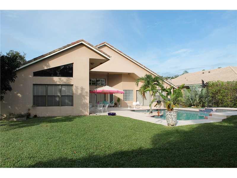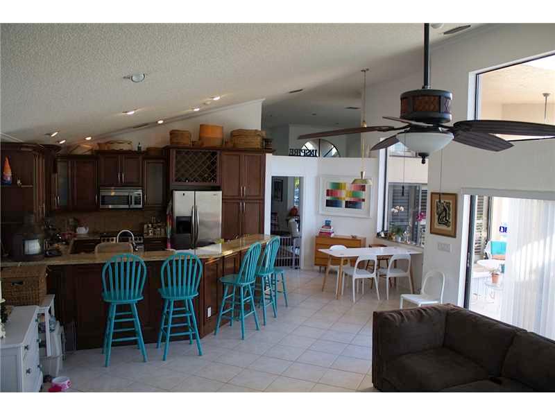 Sought after guard-gated boutique community of Tequesta. Open and beautifully lit and bright, one story, vaulted high ceilings, split plan, 5 large bedrooms and 3 full bathrooms dream home. Kitchen features wood cabinets, granite counters, stainless stee l appliances, peninsula that can sit 6, and a pull out pantry, overlooking the huge family room. Crown moldings throughout. Huge backyard with large patio and over-sized 2 level pool with Jacuzzi. Child pool security gate installed. A+ rated schools.