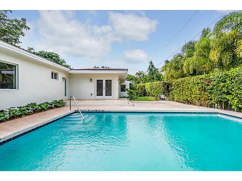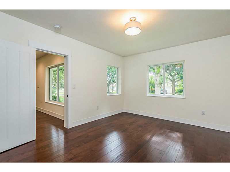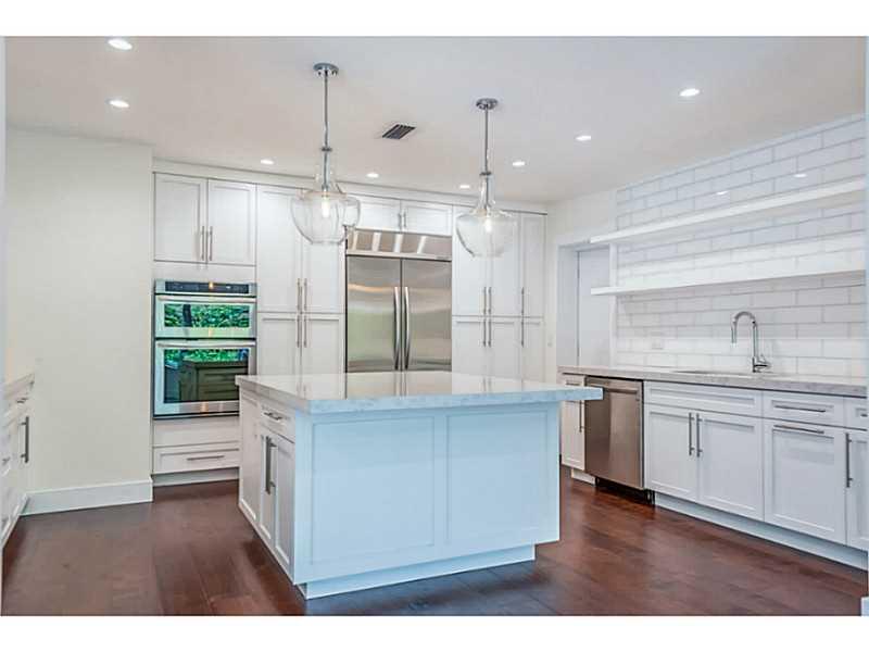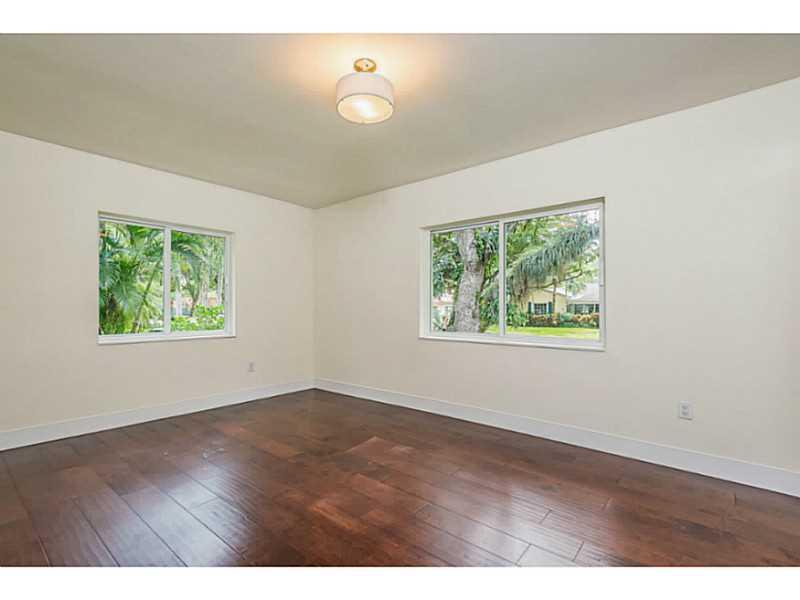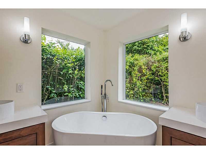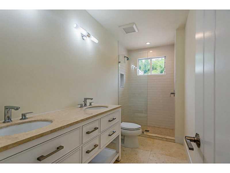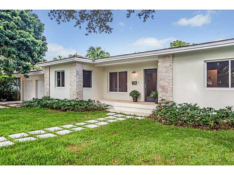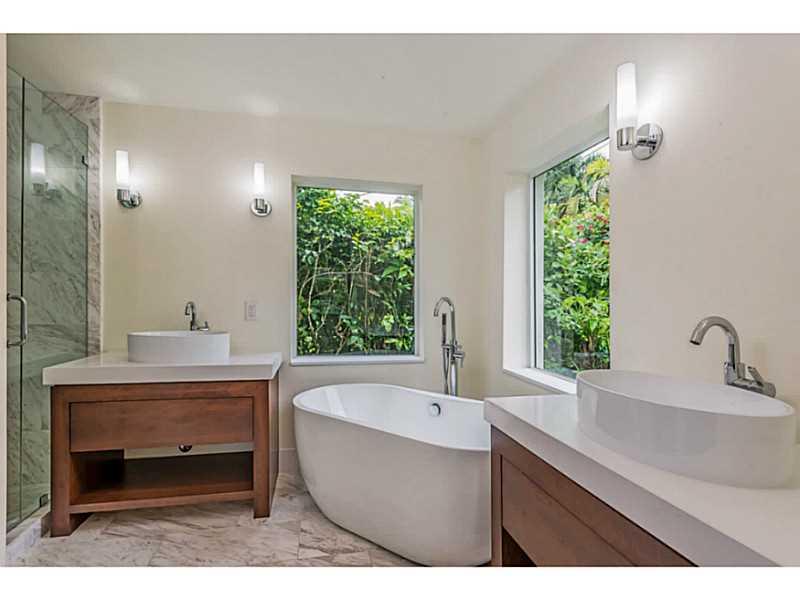 Magnificent transformation of a classic mid-century ranch style home full of natural light on quiet tree-lined street. Clean, contemporary lines and high quality finishes set this home apart from all others. Impact windows and doors and beautiful Birch ha rdwood floors throughout. Triple split plan with 4 very large bedrooms and 5 bathrooms PLUS a 5th bedroom/office with private entry. All white kitchen is outstanding. Master has huge walk-in closet, lavish bath with vessel sinks, separate tub and shower.