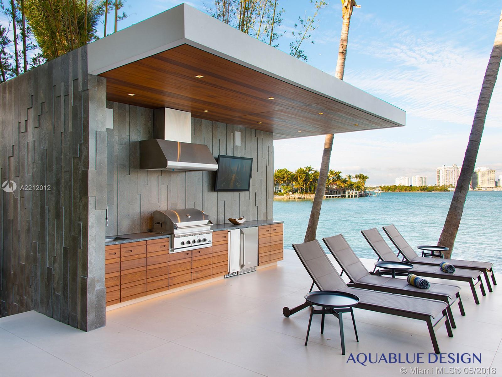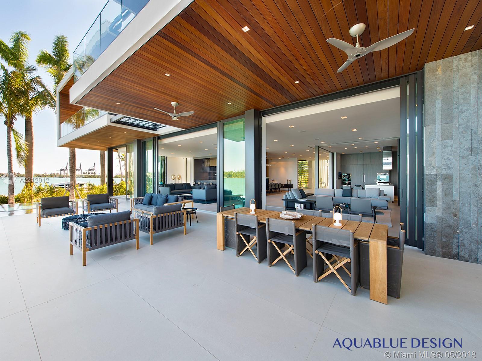Contemporary Miami Beach luxury waterfront home. Open plan living spaces with idyllic transitions to expansive outdoor living areas. Overlooks 110 feet of waterfront views of South Beach. Floor to ceiling rear sliding doors, infinity-edge pool and spa, custom Italian kitchen and closets, elevator to rooftop terrace, fully automated home with Crestron System.