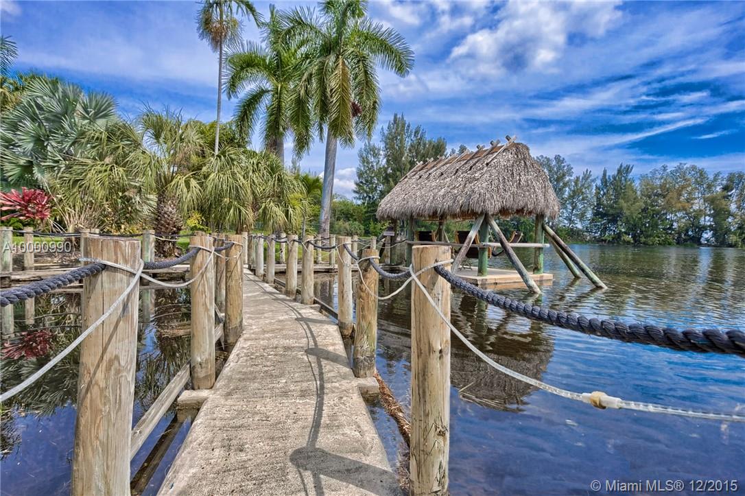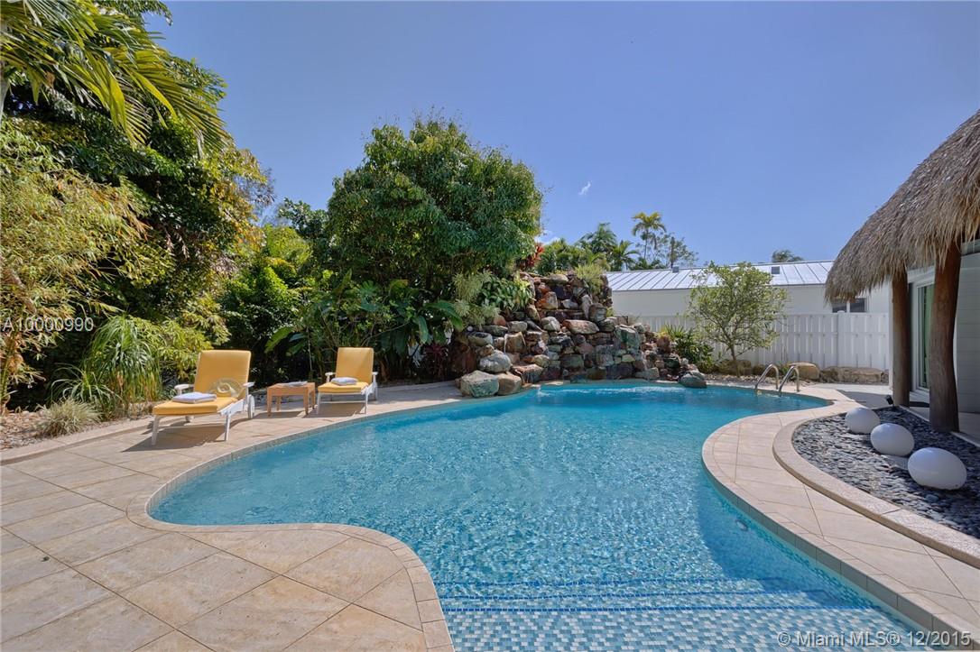 Miami- Secluded Lakefront Paradise with old Florida Charm. Substantially remodeled for outside entertaining:oversized Tiki accommodates large events, brand new masterbath with dual sinks, cabana bath, modern European style gourmet kitchen (view over lake), hurricane proof man cave (convertable into media room/bedroom), double sided working wood fireplace & more. All bedrooms oversee pool area with waterfall. Plenty of storage, separate workshop & office 2- car garage with car lift. Beautiful sunrises!