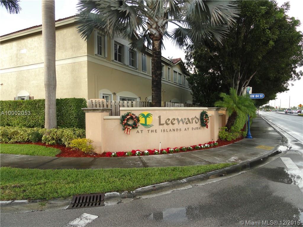 Spacious 3 Bed / 3 Bath 2-Story Townhouse in highly desirable Leeward At Islands at Doral. Tiled throughout. 2 Master bedrooms upstairs with their own bathroom & walking closets and 1 bedroom & full bath downstairs. Washer/Dryer in unit. Well maintained Community with many amenities. Centrally located near Miami Int'l Airport, highways, schools, restaurants & shopping.