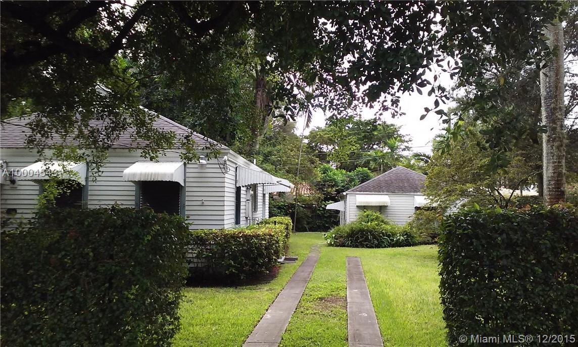 Negotiable Starter home with a DOUBLE LOT and an Artist Studio. In the heart of all the activities and desirable amenities in prestigious Coral Gables. Quaint cottage with a country setting. Main home offers 2 bedrooms, 1 bath, living room, dining room, kitchen and bath. 1930's character with original wood floors and charm. The detached cottage offers a main living dining area with a kitchenette and separate bath with shower. There is separate additional storage at the rear of the cottage.
