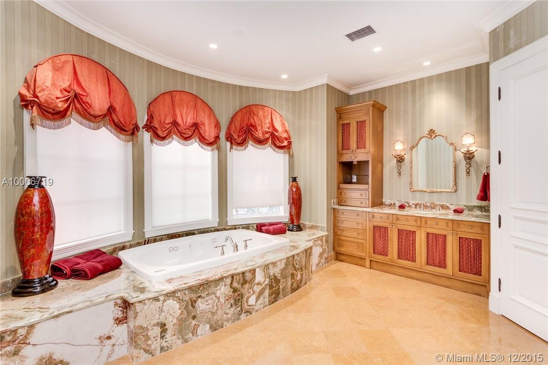 One of the most Elegant Estates in Golden Beach: 7800sqft, 6bdrms/6.5bath, living/dining room w/ very high ceiling, family room w/ breakfast area, gourmet eat in kitchen, master suite with his & her bathrooms, butler's pantry, maid's quarter, theater, & office w/ built ins. Great pool area w/ outdoor space for entertainment, BBQ, dock with new lift and boat (included in sale). 4 car garage, over sized circular driveway, double gated entry, and Old Chicago brick ambiance charm in the courtyard fountain.