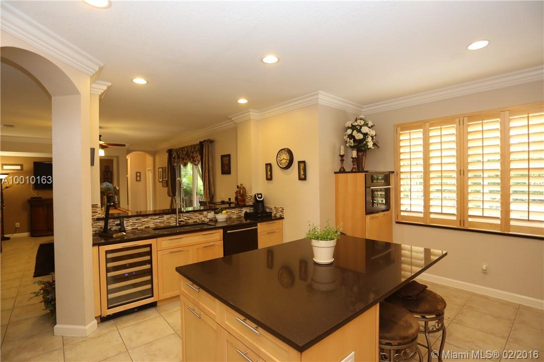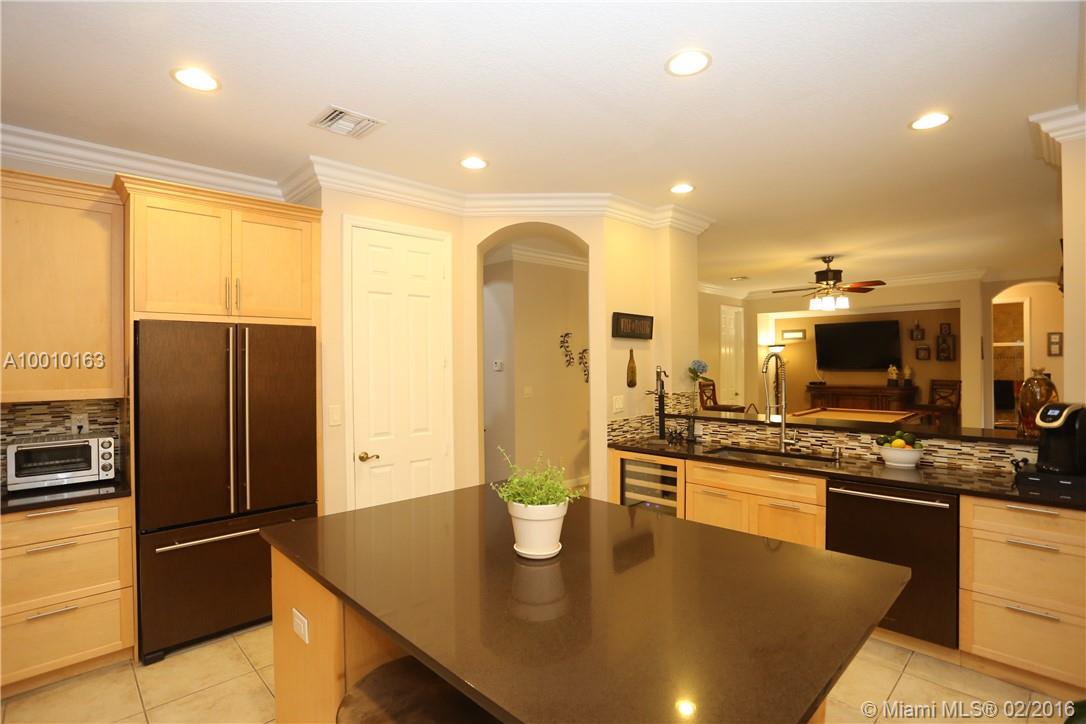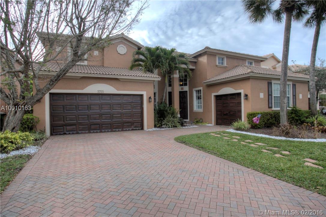 Beautiful home in the desirable Isles at Weston with a fabulous layout. Entertain beneath soaring in this resort style patio! A well-appointed kitchen with special design Bronze Jenn-Air, double ovens, microwave, dishwasher, refrigerator & hood. Quartz counter tops with glass tile backsplash that will take your breath away! Crown molding, ceramic tile 1st floor, wood floors in the stairs and 2nd floor. Don't wait a must see, act now before is gone!