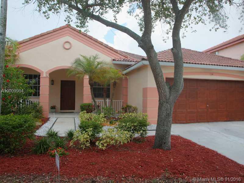 Have your children safely walk to Gator Run Elementary School. Beautiful (Clover-Burlington Model) 4-Bedroom in the Fairfield Meadows Community, Weston FL! Gorgeous hard wood floors in living areas, upgraded master bath, crown molding. Top of the line Len ox A/C, only 2 years old, new GE Profile stainless steel refrigerator and KitchenAid dishwasher. Furniture available for an additional cost.