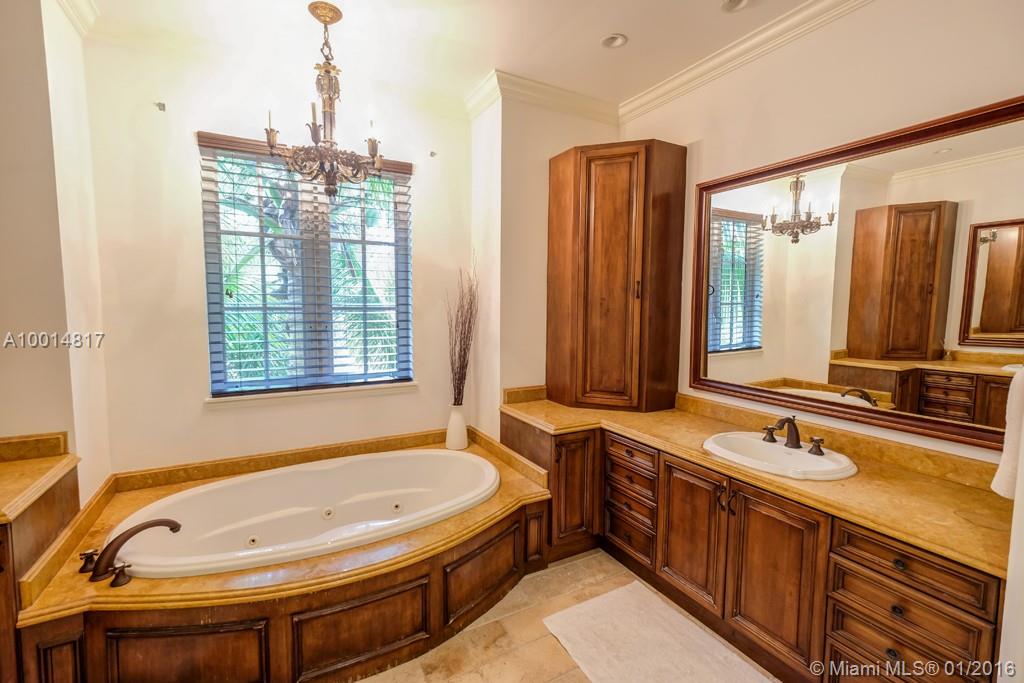 Rarely available newer construction family home in North Gables. Beautifully appointed and maintained with courtyard/pool/patio. Mediterranean design with Exquisite floors, finishes, eat-in kitchen, baths and huge master suite.