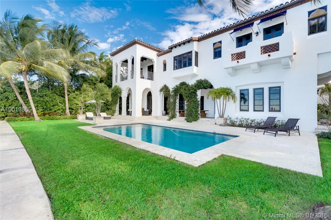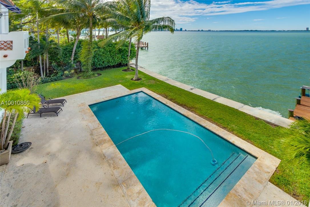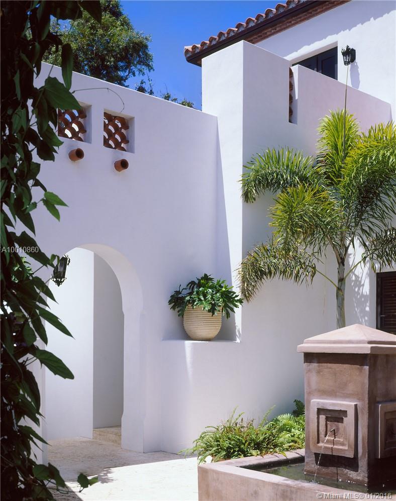 Moorish style estate built in 2004 w/ sweeping wide bay/skyline views. Custom wood & wrought iron door opens to interiors of stone & hardwood floors, stunning arched hallways complemented by natural light. Interiors: Spacious living room, formal dining room w/ custom wood ceilings & gourmet kitchen w/ stainless steel appliances. Master suite w/ 2 walk in closets, guest house, balconies, French doors from evry room w/ access to multilevel courtyard & views 117’ of waterfront, pool & boat dock w/lift