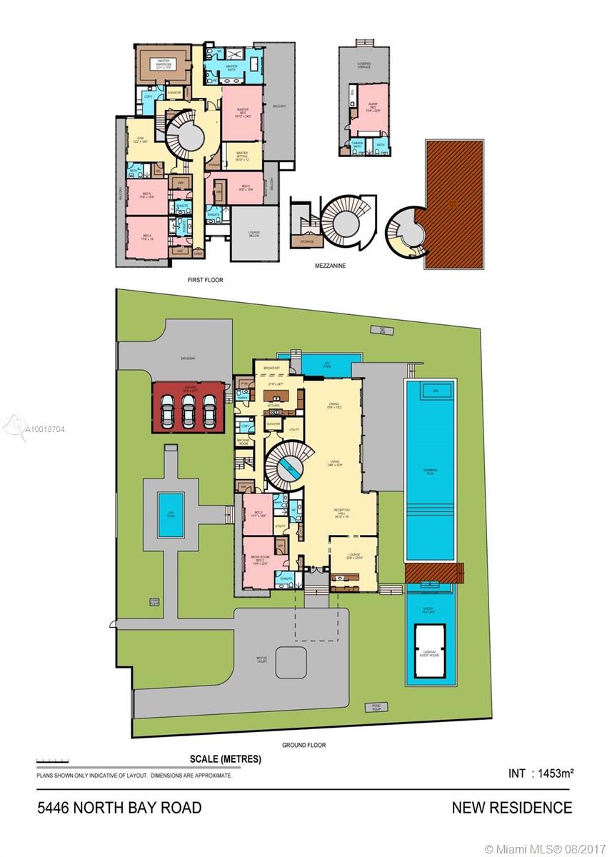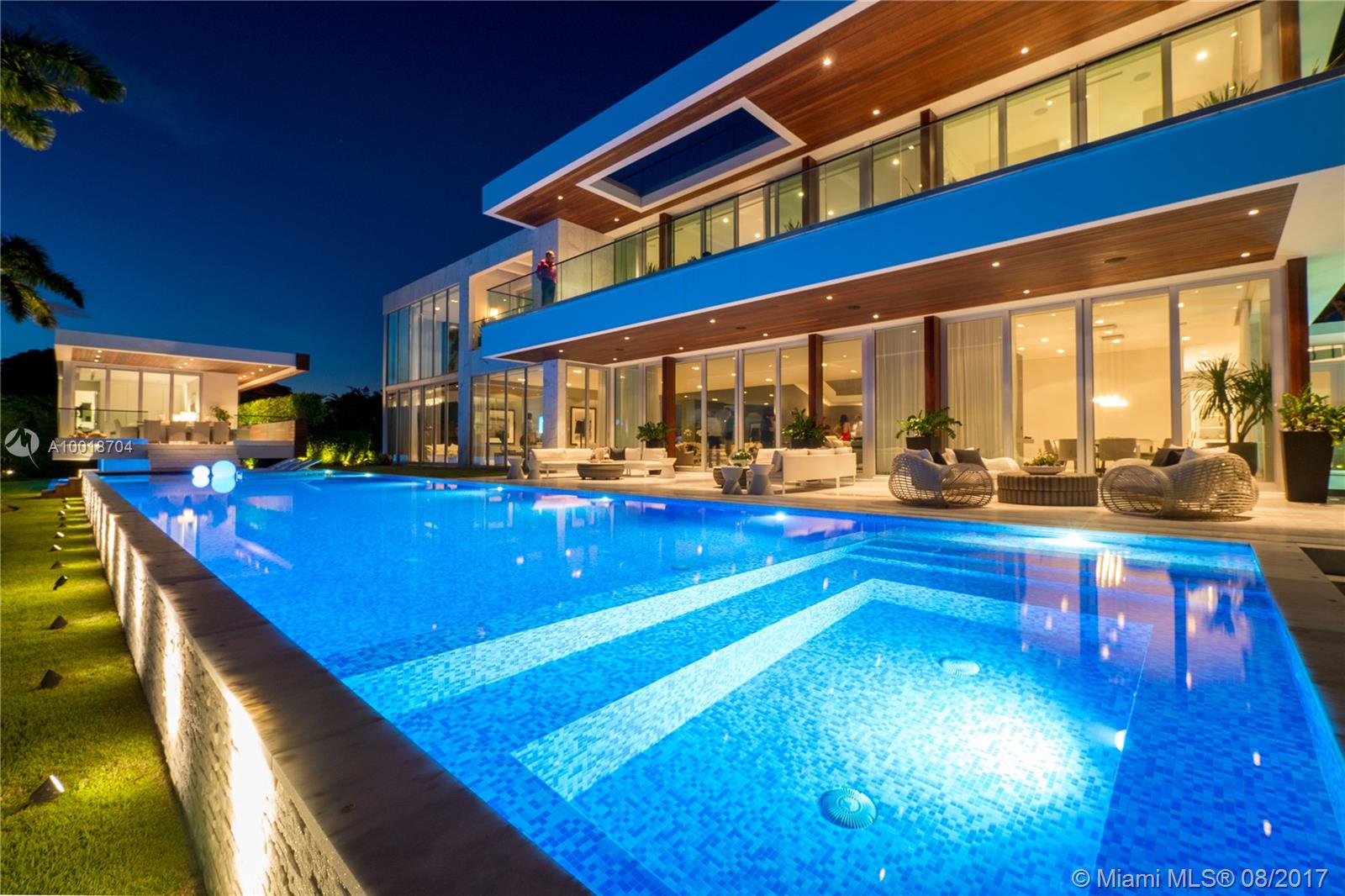 5446, is a true Jewel Box. Located on Prestigious N. Bay Road, lay an architectural masterpiece nothing short of Spectacular. This "smart home" includes a chefs kitchen, Otis elevator,floating curved staircase, rooftop terrace,gym,70" pool/spa, 3 koi ponds, and retractable doors that offer sweeping views of the Miami skyline. From Mega Developers Todd Michael Glaser and the Posner Group. Approved plans for large gym, theater, and 2 more staff rooms above garage adding 2,233 SF.