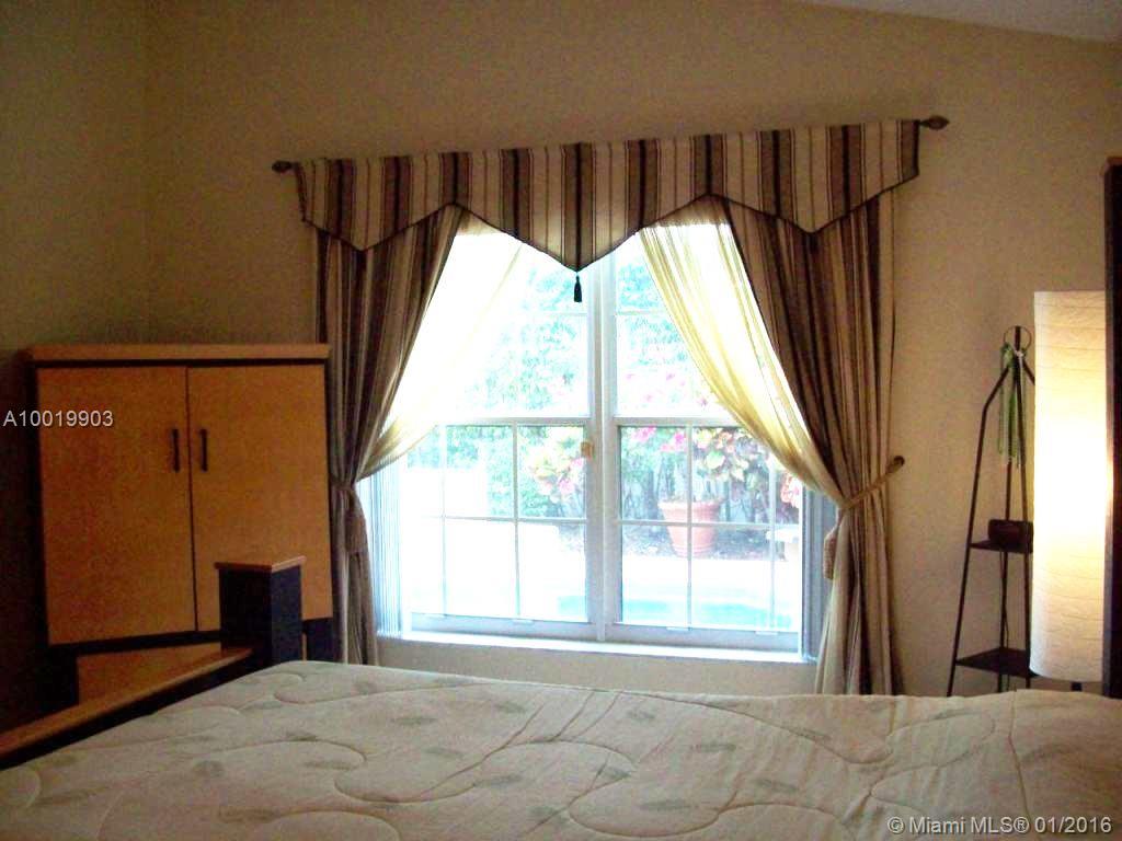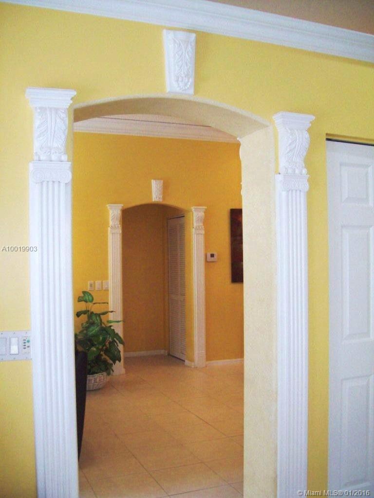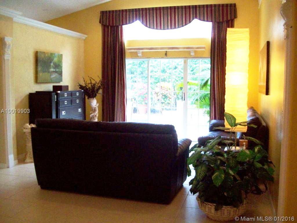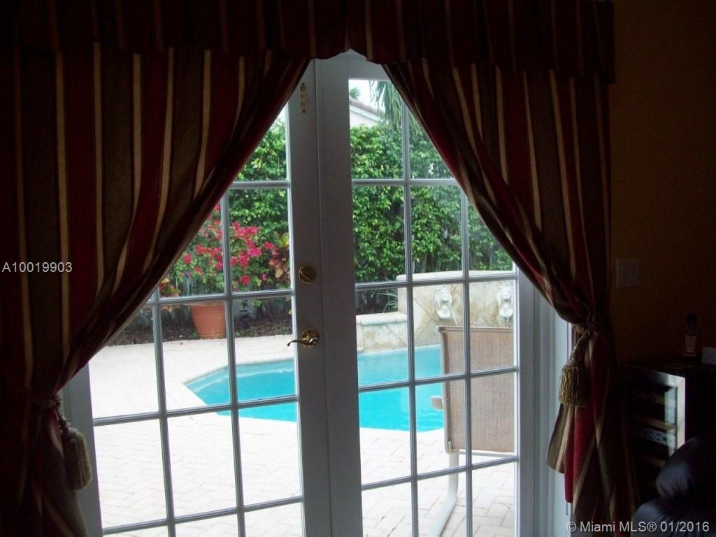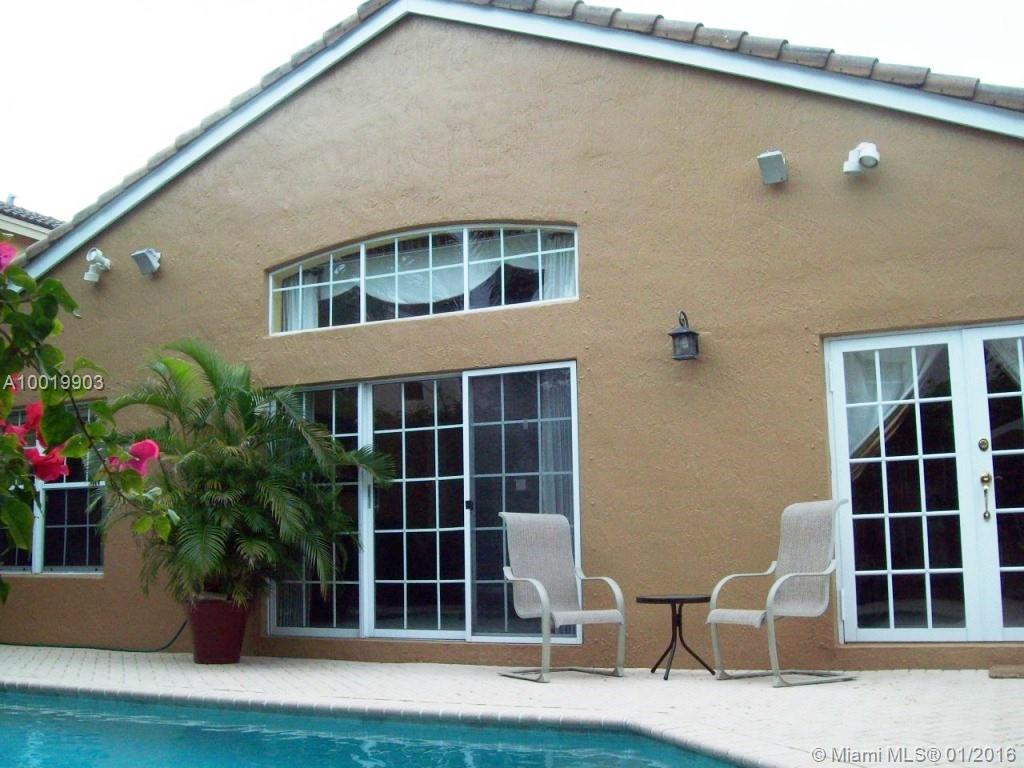 Stylish designer touches make the beauty of this home unique: arch & columns at entrance foyer, architectural trims around passageways, upgraded baseboards & crown moldings. Features include diamond finish heated pool (2014 pool heater & pump), outdoor shower, wood blinds, hi efficiency cost saving A/C (2012), SS kitchen appliances (fridge 2013). Granite kitchen. Bright airy home. Furniture is negotiable. Larger lot than most. Near Oakridge park entrance. Walk to houses of worship. Guard gated community.