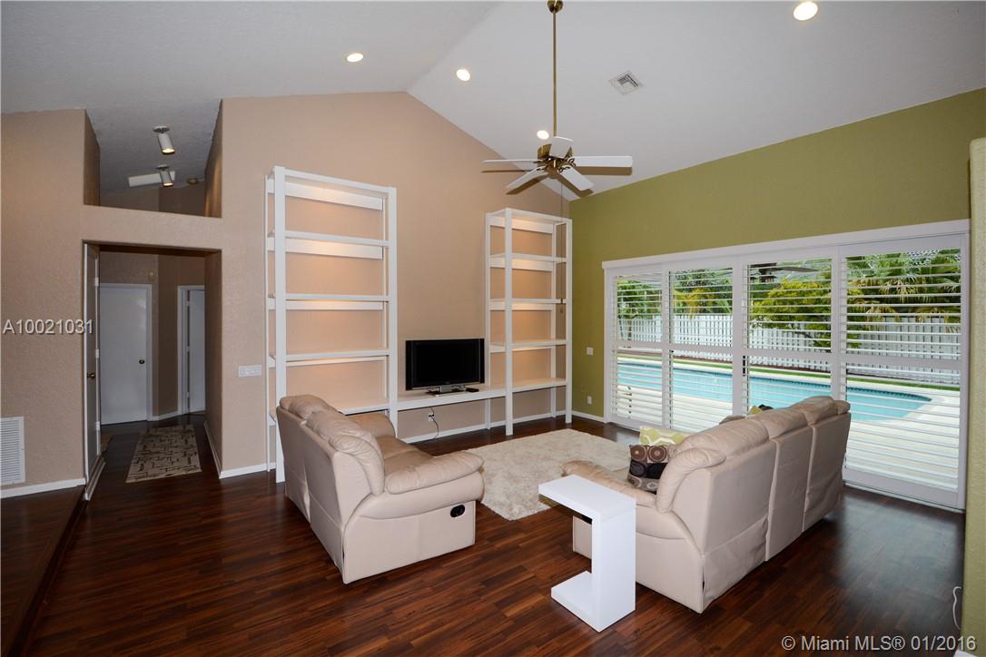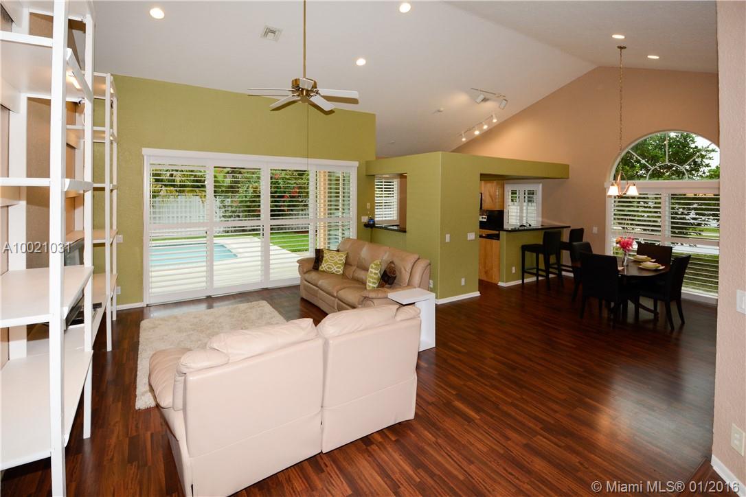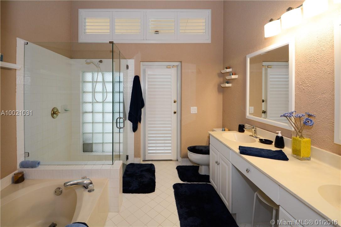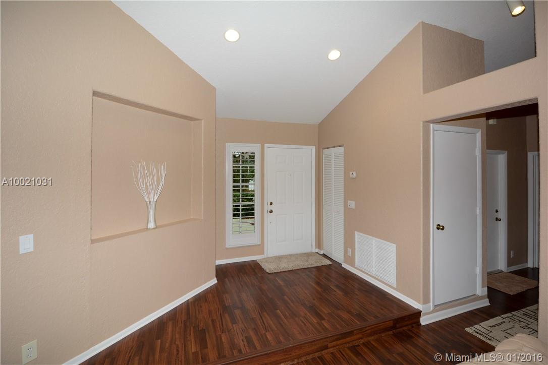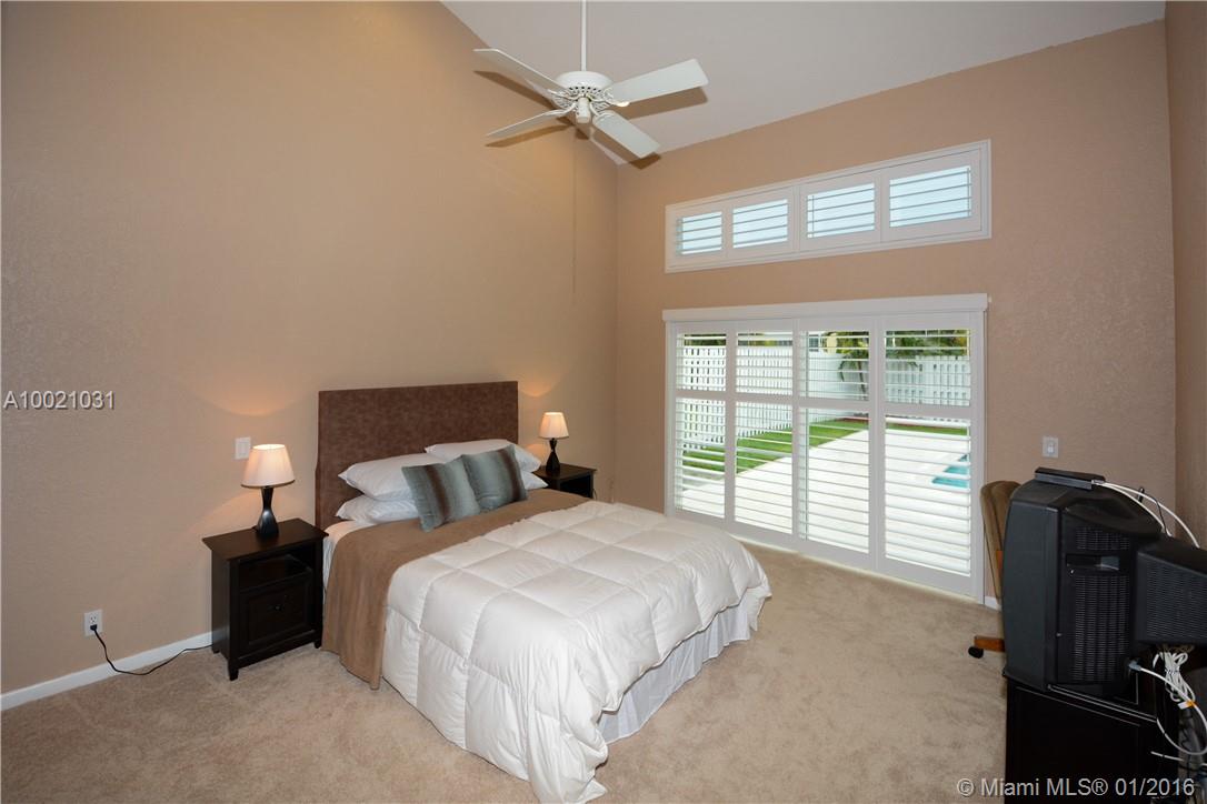 Move-in condition Aledo model is on a nice sized corner lot and offers 3BR/2BA & 2 car garage. Upgraded eat-in kitchen with wood cabinets, granite counters and stainless steel appliances. Fully fenced and private yard and swimming pool and covered patio. Elegant plantation shutters on all windows. Wood laminate flooring in the social areas and carpeting in the bedrooms. Gated community is in walking distance to Weston Town Center.