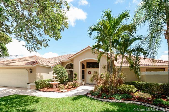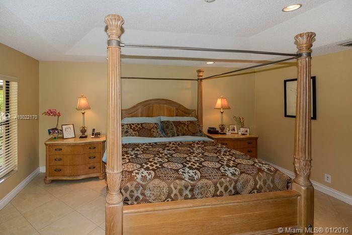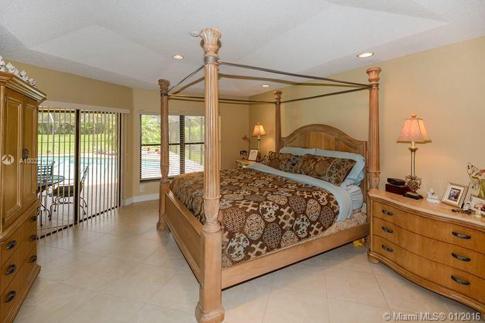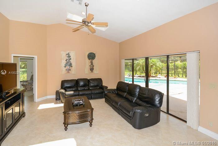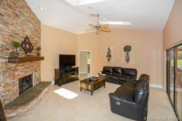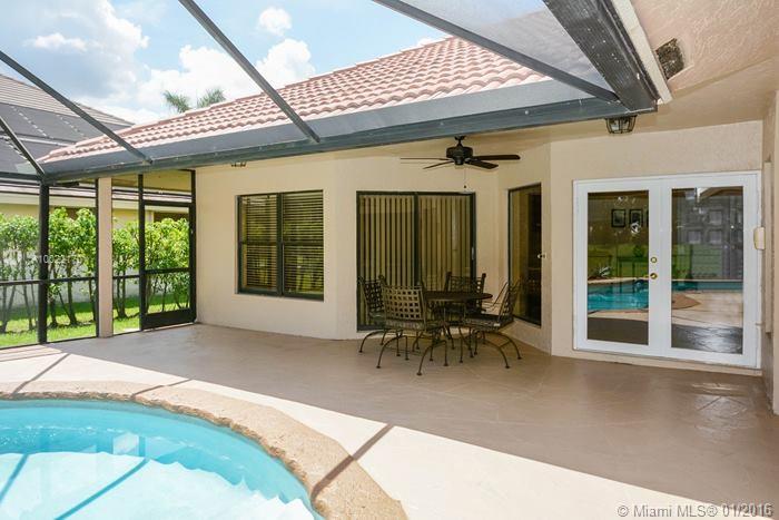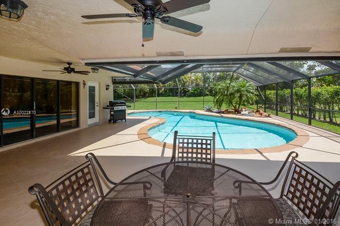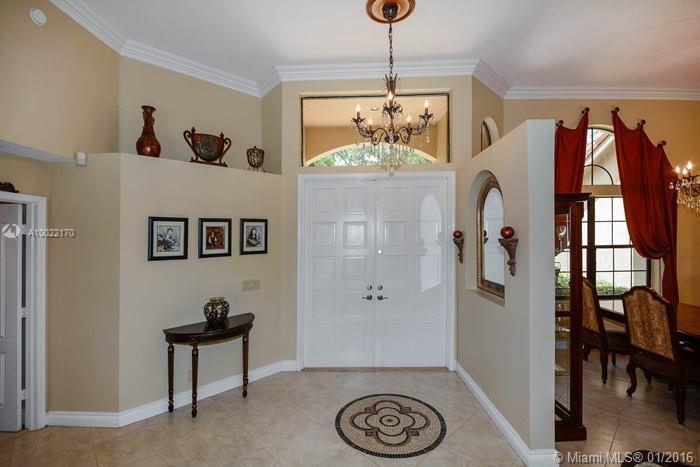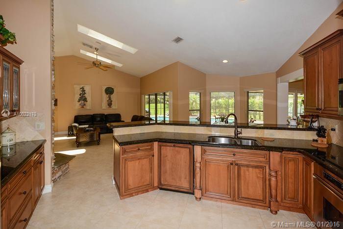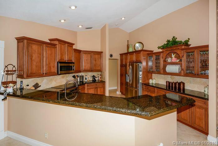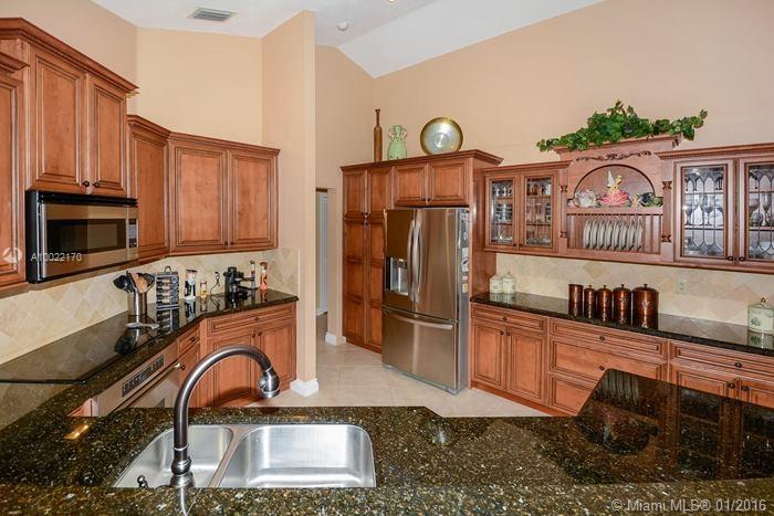 Drive the tree lined streets in this boutique community of Tequesta Manor homes to arrive at this one story, 5 bedroom, 3 bath home with screened in pool for entertaining. 22" Diagonal Tile and wood floors in office. Impact glass Skylights, crown moldings and high end décor throughout. Upgraded Kitchen features maple wood cabinets, granite counters and stainless appliance with NEW refrigerator and pull out pantry. Gated Weston community with "A" rated schools. Close to shopping, dining & Peace Mound park.