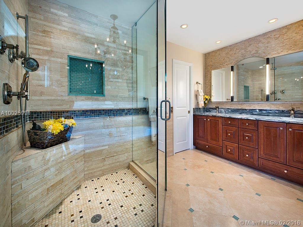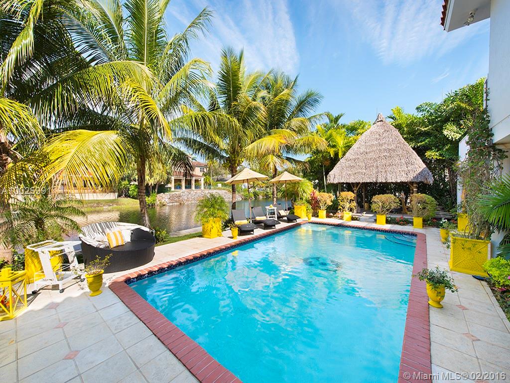 Entertainment delight, beautiful updated waterfront home with over 7600 sq ft in gated and desirable Gables by the Sea. Enjoy the pool, custom landscape, Koi ponds and Tiki hut by the large covered entertainment patio. Watch sports in your home theater with popcorn machine and bar. 4 bedrooms and 3.5 bathrooms on the main floor plus a game room, bedroom, den and bathroom on the ground floor. Can be used as an in law suite. Large living room and formal dining room. Enjoy elegant Florida life. 4 car garage.