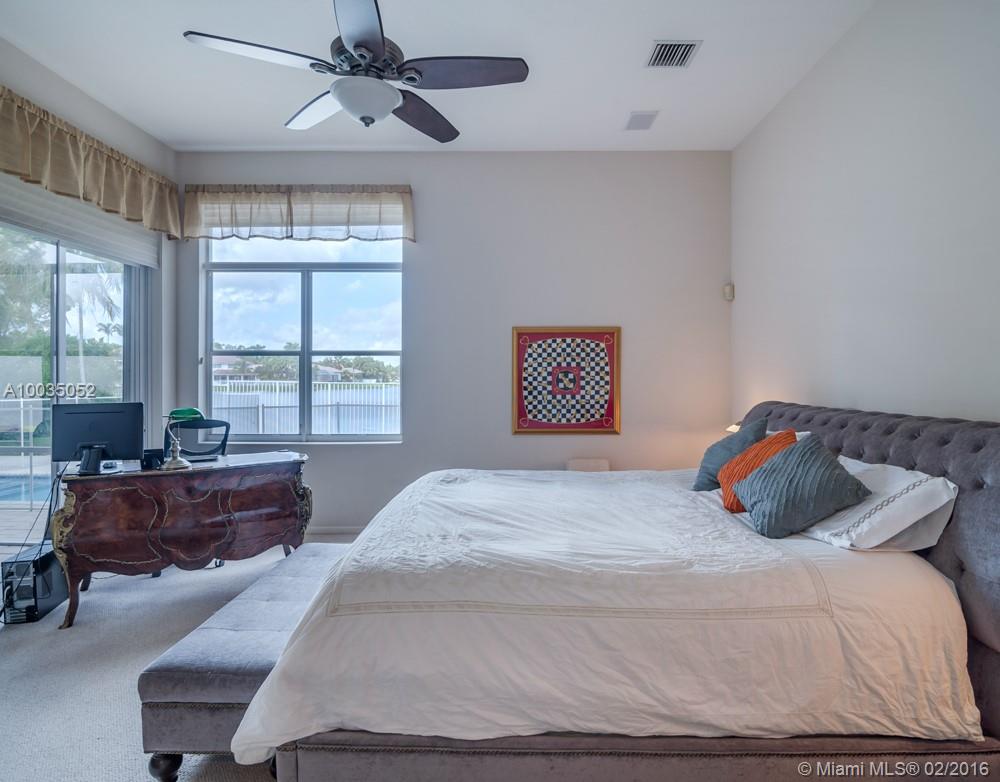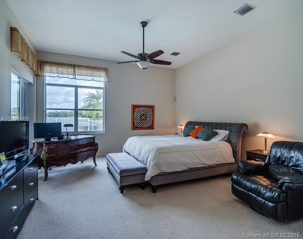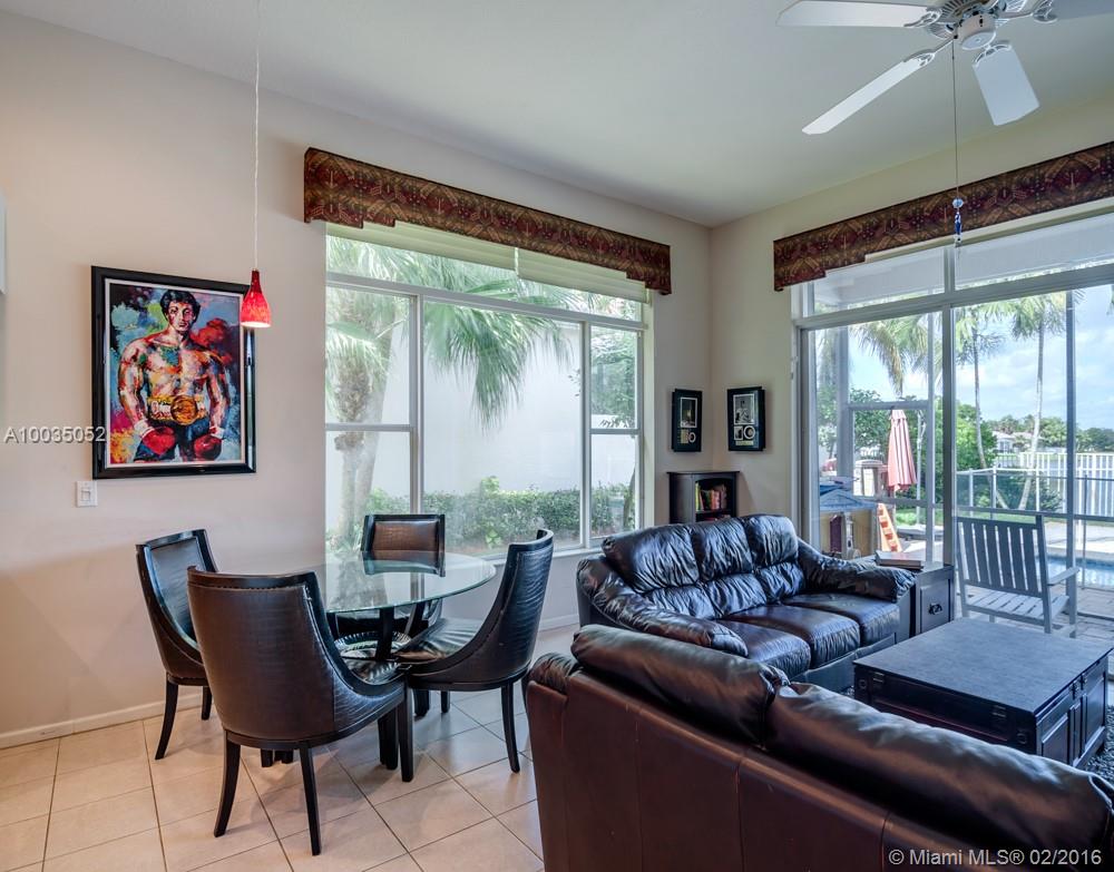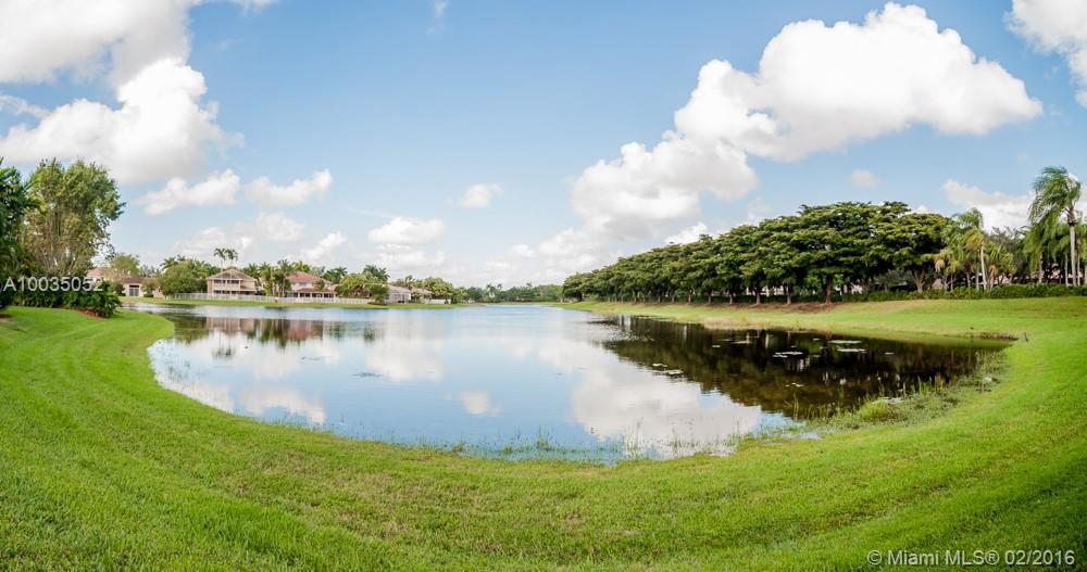 Located in boutique community of Bay Pointe-Weston Hills. Spacious custom model boasts open floor plan with lots of natural light. Long unobstructed lake views from oversized pool, fully fenced with separate screened paver patio for outdoor enjoyment. Floor to ceiling windows take in the views. Freshly painted with neutral tones. 3 spacious bedrooms and 3 baths. Accordions. Fully maintained community which included lawn service, tree trimming, mulching and irrigation, housing painting, and power washing.