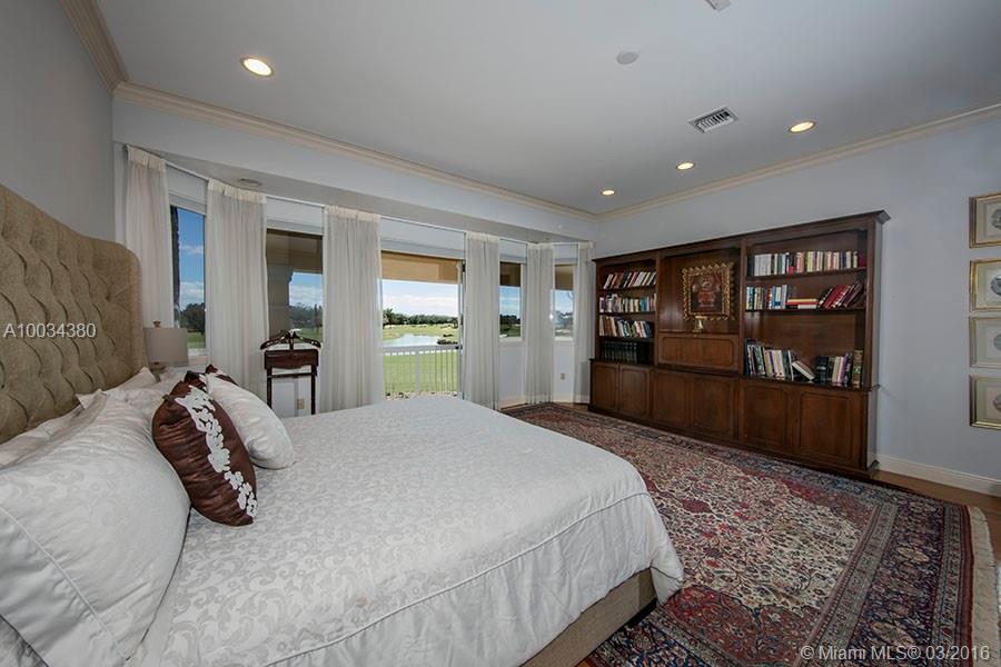 The Riviera Golf course is your back yard! 2001 coveted Santa Maria home on 13,548 sf lot w/beautiful new lake view.Stunning living room w/highrise ceiling,abundant light.Double doors from dining rm open to private pool area+sundeck.Cooks kitchen w/island, open to fam rm & breakfast w/more unobstructed views of golf course.1 bdrm guest suite down stairs plus maids qrtrs.Spacious master w/breathtaking golf course view from terrace;2 walkins,large bathsuite. 2 addtl bdrm suites upstrs. Impact w+d. 2car gar.